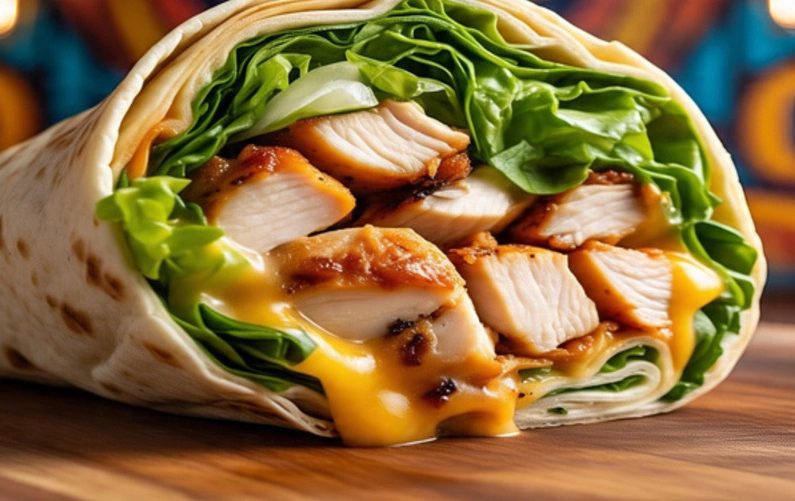 It’s the perfect combo of crispy or grilled chicken, crunchy lettuce, diced tomato, cheddar cheese, and your choice of sauce, all folded neatly into a warm flour tortilla.